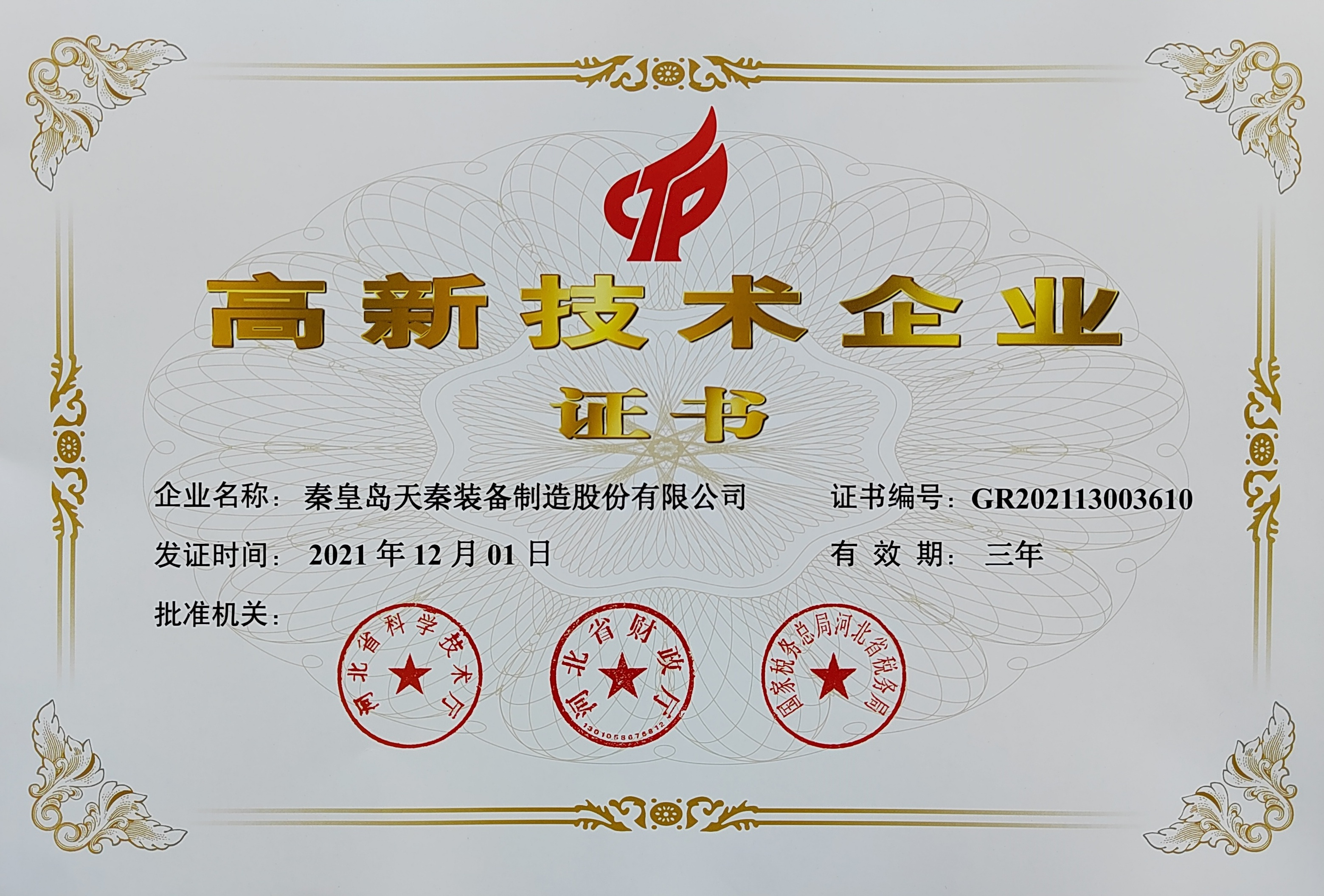 - 秦皇島天秦裝備制造股份有限公司創(chuàng)立于1996年,總部位于河北省秦皇島市經(jīng)濟(jì)技術(shù)開(kāi)發(fā)區(qū),秦皇島廠區(qū)占地4萬(wàn)平方米,擁有3萬(wàn)平方米的標(biāo)準(zhǔn)廠房、辦公樓和工程技術(shù)研發(fā)中心;分部天津廠區(qū)位于天津市靜海經(jīng)濟(jì)開(kāi)發(fā)區(qū),占地2萬(wàn)平方米,擁有1.6萬(wàn)平方米標(biāo)準(zhǔn)廠房。 公司通過(guò)了GB/T 19001質(zhì)量管理體系及GB/T 24001環(huán)境管理體系認(rèn)證,是國(guó)家高新技術(shù)企業(yè)、河北省軍民融合產(chǎn)學(xué)研用創(chuàng)建基地,建有省級(jí)院士工作站。